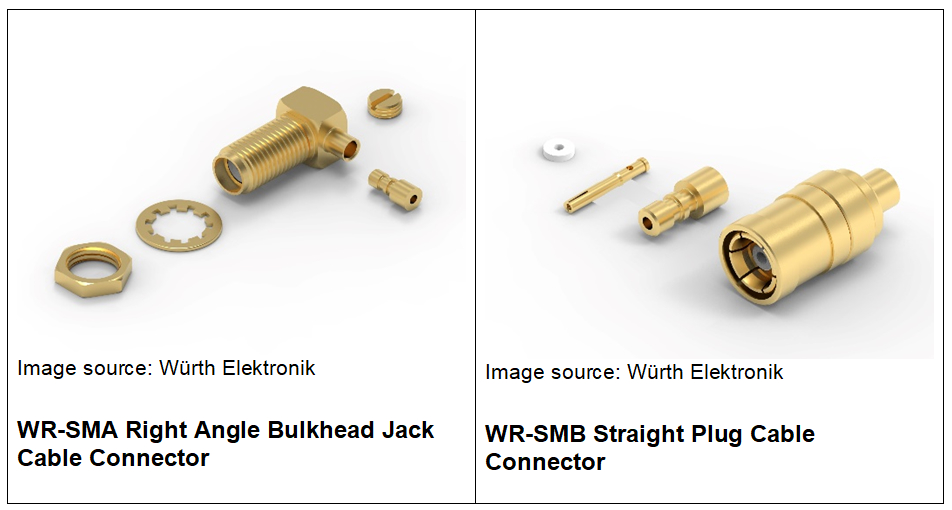 Роз'єм з прямим кутом для застосування в діапазоні частот до 6 ГГц має дуже компактну конструкцію та зменшене напруження кабелю. Нова модель серії WR-SMA для обтискного монтажу також доступна у версії зі ступенем захисту IP67.